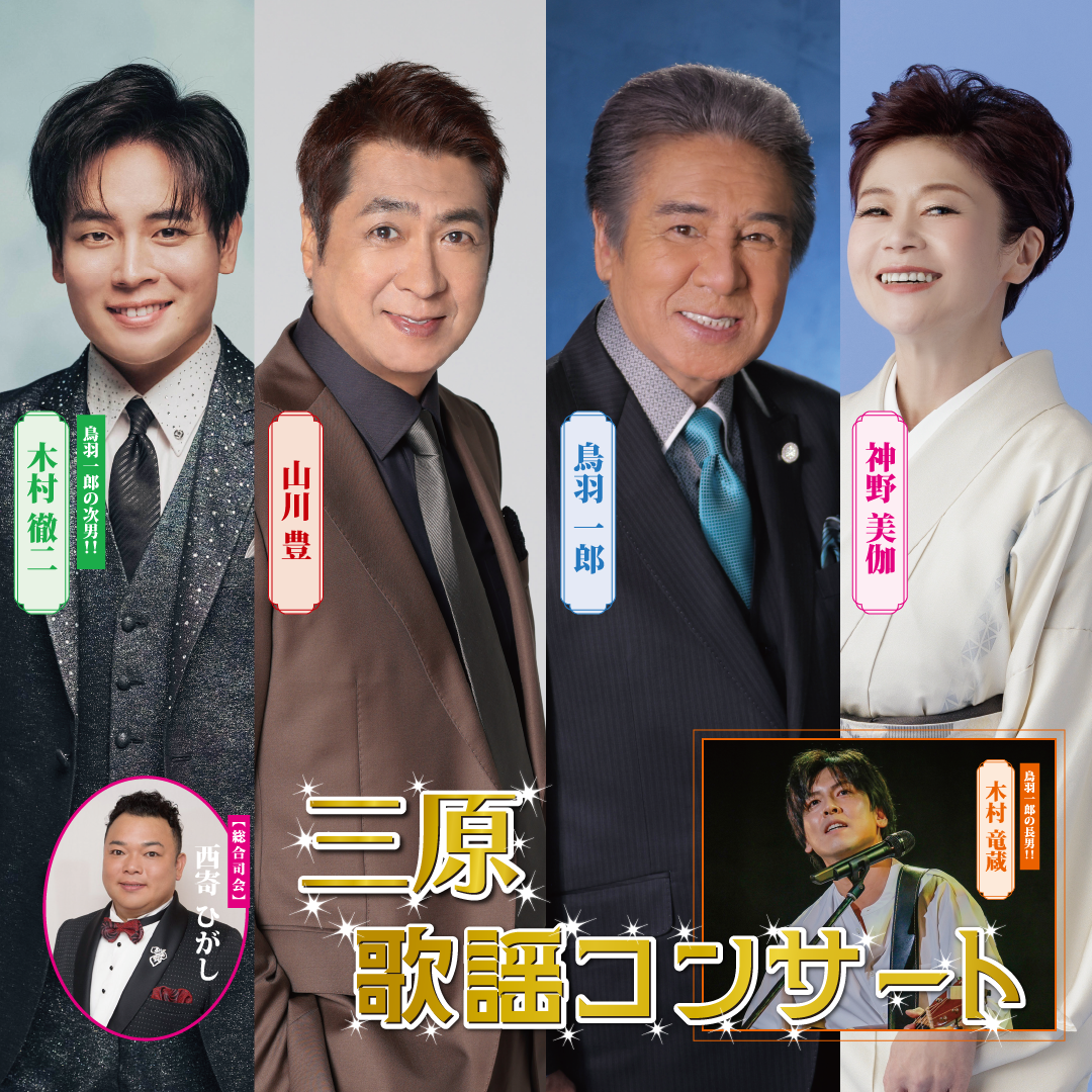 鳥羽一郎・山川豊・神野美伽・木村徹二が一堂に会する豪華公演。
